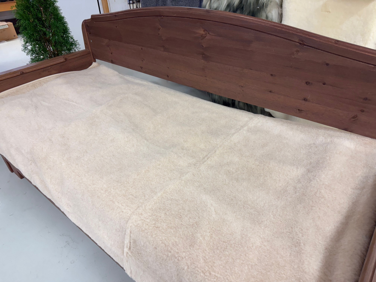 Yksipuolinen pehmeä beigen värinen merinovillapeitto on muhkeaa, pörröistä merinovillaa ja sen alapuoli on pehmeäksi harjattu. Peitossa on merinovillaa noin 500 g neliöllä. Peiton koko on 150x200 cm. Peiton lämpö hellii viluista välittömästi, mutta ei ole kuuma eikä hiostava hengittävyyden ansiosta. Peitto sopii hyvin nukkumiseen, torkkupeitoksi ja päiväpeitoksi.Hoito-ohje: Tuuletus ja pesu tarvittaessa villapesussa 30 asteessa.