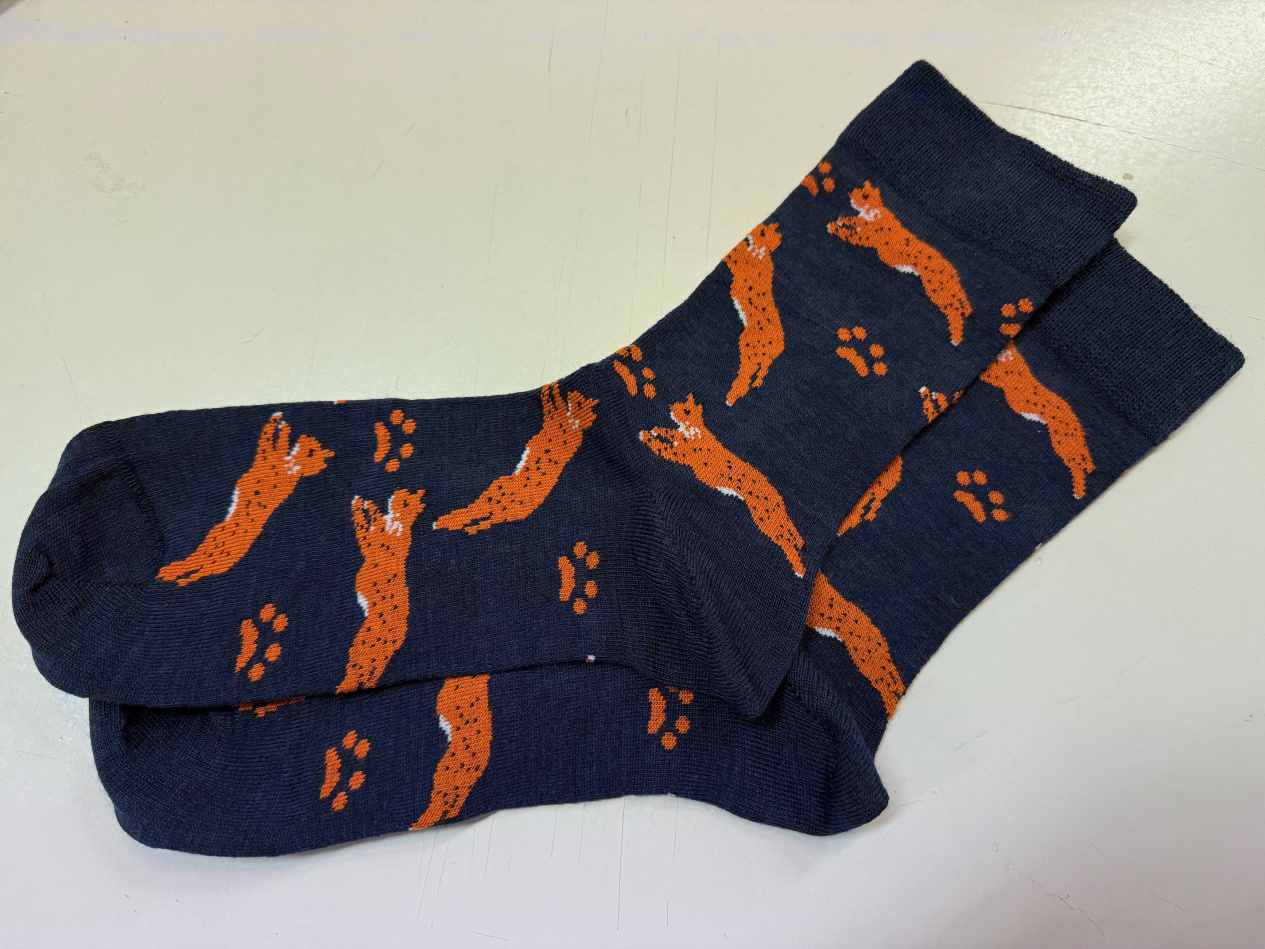 Tummansinisellä pohjalla oranssilla ILVES kuva. Lambar ILVES merinovillasukkien lämpö on miellyttävä. Nämä ohuet sukat on valmistettu 80 % aidosta merinovillasta, polyamidista 12 % ja elastaanista 9 %. Tekokuitulisä tekee sukasta kestävämmän, kuin pelkästään villasta valmistetut sukat. Sukat eivät myöskään kutita eivätkä hiosta. Sukkia ei tarvitse pestä joka käytön jälkeen, vaan ilmava tuuletus käytön välissä raikastaa sukat. Sukat voidaan pestä 40 asteen villapesuohjelmalla. Suosittelemme lanoliinipitoisen Lambar villapesuaineen käyttöä, koska se palauttaa sukkiin niiden alkuperäisen pehmeyden ja likaa hylkivyyden. Pesuaineen on havaittu myös vähentävän pistelyä, jota jotkut erittäin herkkäihoiset saattavat kokea erilaisissa villatuotteissa (ei siis koske vain näitä sukkia). Sukkien peseminen nurinpäin käännettynä vähentää nyppyyntymistä.