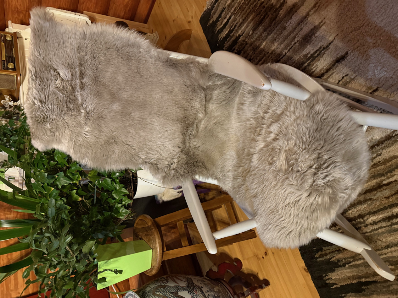 Taljaistuinpäällinen on valmistettu kahdesta kokonaisesta kauniin pellavan väriseksi värjätystä englanninlammastaljasta. Istuinpäällinen pituus on 170-180 cm. Leveys vaihtelee, koska istuinpäällinen noudattelee taljan luontaista muotoa. Leveimmästä kohdasta se on noin 65-70 cm. Karvan pituus on 5 cm.