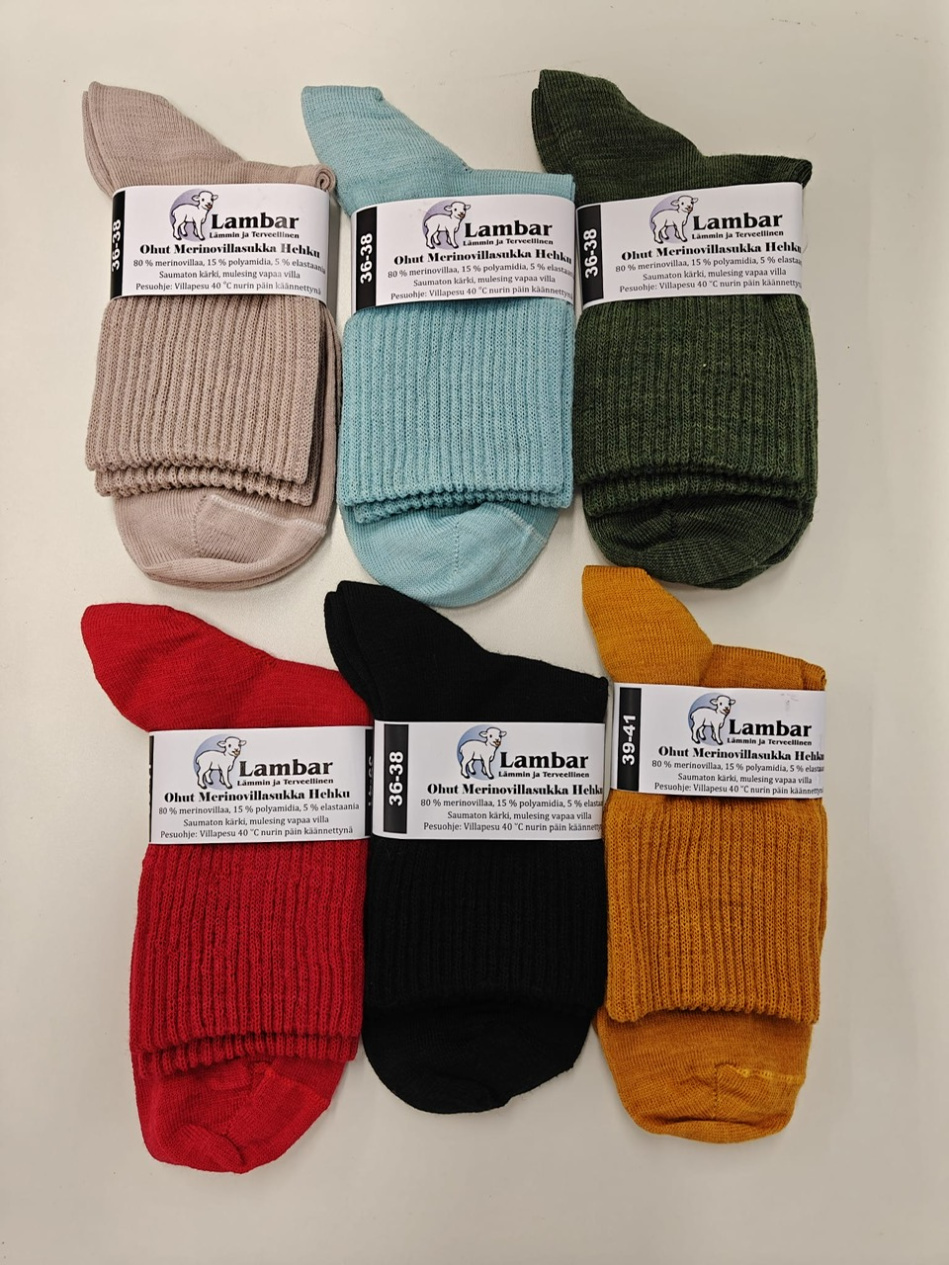 UUTUUSVÄREJÄ Lambar Kiristämätön Hehku ohut merinovillasukka (80%)